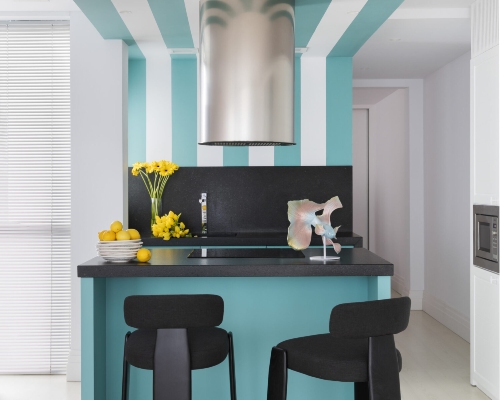 Un interior luminoso que usa el blanco como lienzo para activar acentos turquesa/buganvilla y piezas icónicas. Texturas cálidas (suelo continuo, zócalo marcado) y una selección de arte y diseño construyen una casa fresca, sofisticada y vivible.